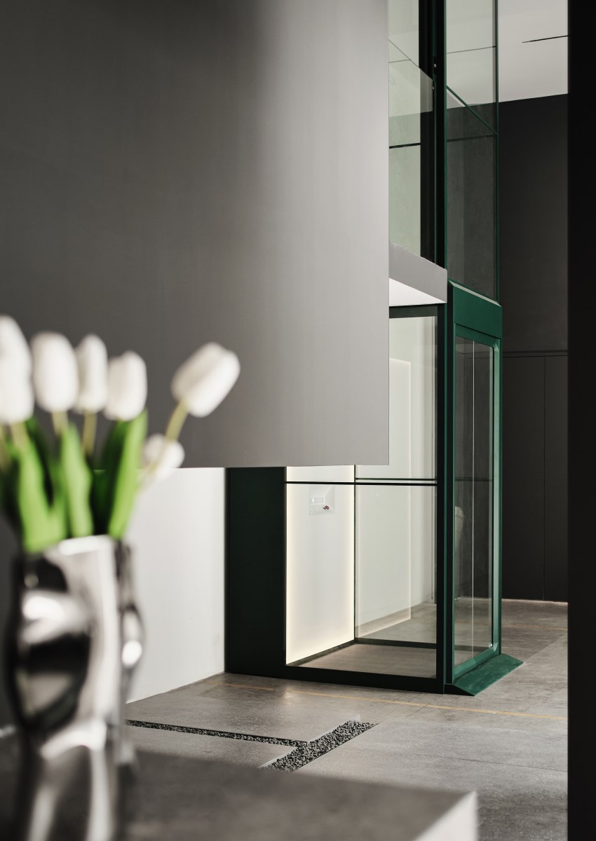 它解决了传统电梯对空间切割生硬的问题,以柔和的轮廓最大化释放空间视觉完整性,让